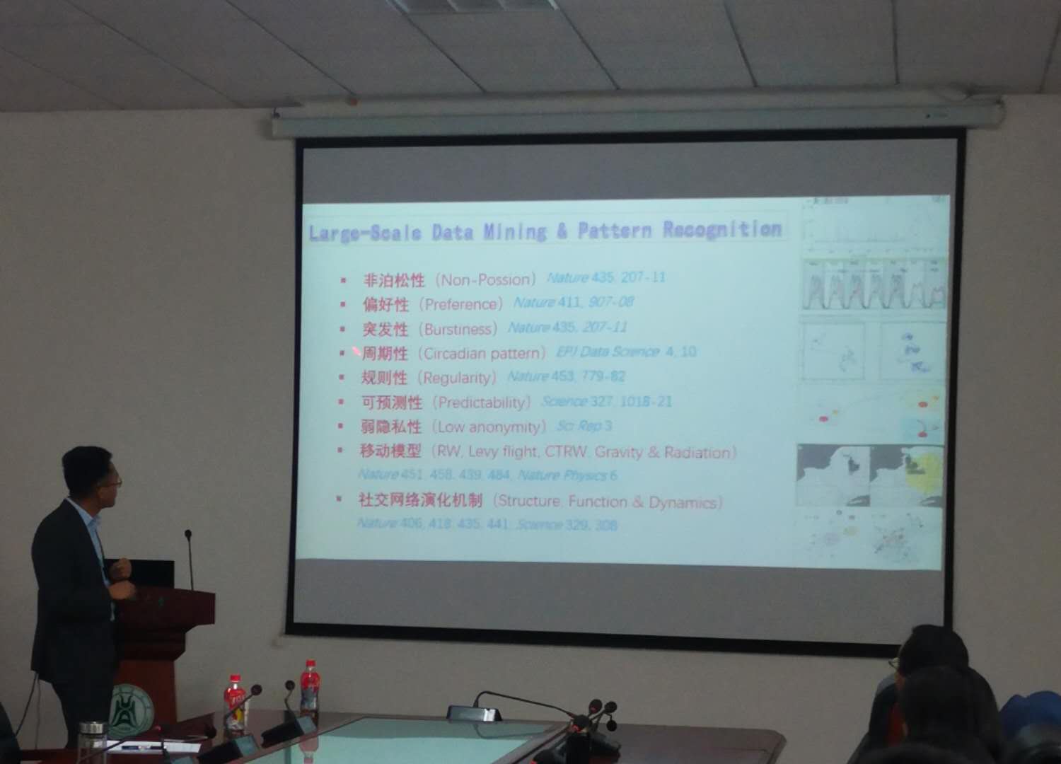 报告中,吕欣教授以“大数据+复杂网络+人类行为+管理决策”为主线展开讲解,他首先提到大数据的获取方式是多源的,例如手机、卫星、网络等,获取到大数据以后便可以就人类行为进行分析,主要包括人类行为的挖掘、心理、行为轨迹分析等,最后的成果对政府在灾害应和公共卫生等方面的政策起到一个检验和支持的作用。他强调,多源大数据在科学研究领域有着举足轻重的地位,多源大数据的发展促使我们加深对人类行为的研究,同时也促进了我们对灾害应急的管理水平,极大地降低了灾害造成的伤害幅度,是全人类的福祉。吕欣教授还介绍了在该领域中的一些前沿研究,主要包括人类行为动力学、传染病模型、异常检测、贫困的映射、系统部署、其他应用程序等。