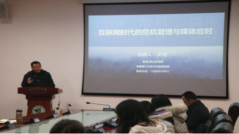 论坛,在人文楼M101为全体师生带来了题为“互联网时代的危机应对与舆情引导”的主题报告,该报告由王家合教授主持。