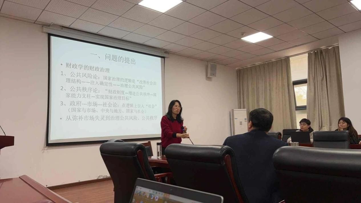副院长王家合教授主持。报告从财政社会学视角切入,深入探讨了中西方财政治理逻辑的差异与中国财政实践的独特路径。