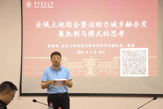 金晓斌教授作主题为“全域土地综合整治助力城乡融合发展机制与模式的思考”的学术报告。本次论坛由蜜桃传媒