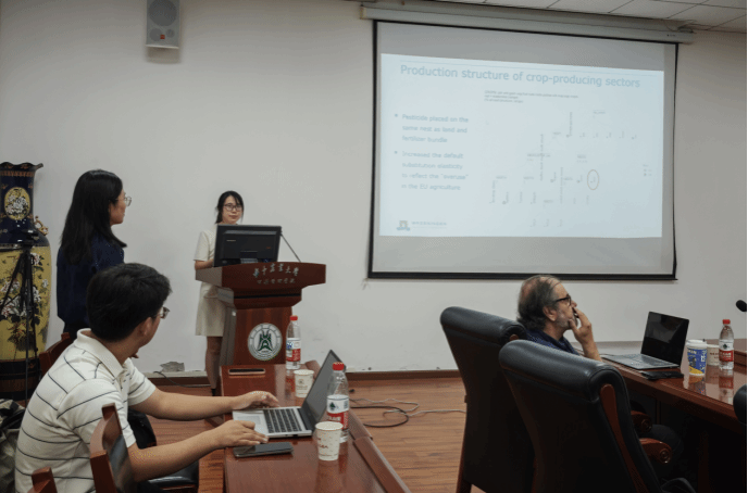 讲座中,金燕博士详细介绍了其团队利用先进的可计算一般均衡(CGE)模型,该模型基于全球贸易分析项目(GTAP)框架,详细刻画了农业、食品、生物经济及环境等多个部门的复杂交互关系,对欧洲减少有害农药使用政策进行了全面评估。