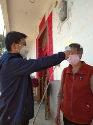 由于江西跟湖北一水相连,我从武汉回到家乡后不久,疫情便在我们当地发生了。在村里,我积极主动配合村委会干部进行武汉返乡人员登记和体温测量,做好各种防护措施。我们村大年初四开始封闭管理,村里农民普遍文化水平不高,对疫情严重程度认识不够,有的村民外出不戴口罩,甚至还聚集一起聊天。看到这些情况,我感到内心十分焦灼,心想自己作为一名共产党员,又是学生党支部书记,总要为当地做点力所能及之事。了解到村口设有检查疫站对村民进行教育工作,我便主动找到村干部表达了做志愿者的意愿。2月初,我开始在村口协助村干部登记出入人员信息,进行相关人员劝返,上户办理临时通行证及测量体温等工作,认真细致地完成每一项检查登记任务。身为研究生党员的我们必须要以高度的政治觉悟和责任担当尽己所能做好疫情防控工作,只有这样,我们才不愧对身上的党徽,不愧对自己的初心!