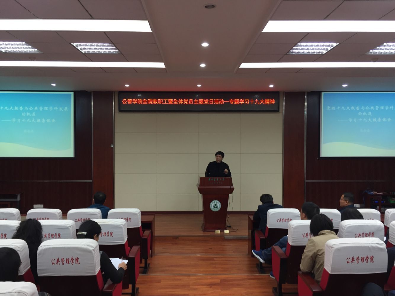 学科专业特点,作了题为“党的十九大与公共管理学科发展的机遇”的报告。他从需求侧和供给侧两个层面分析了党对新形势下主要矛盾转化的科学判断。他认为,在国家治理体系和治理能力现代化的伟大进程中,坚持党委领导、政府主导、公共参与、社会协同是根本方法,蜜桃传媒