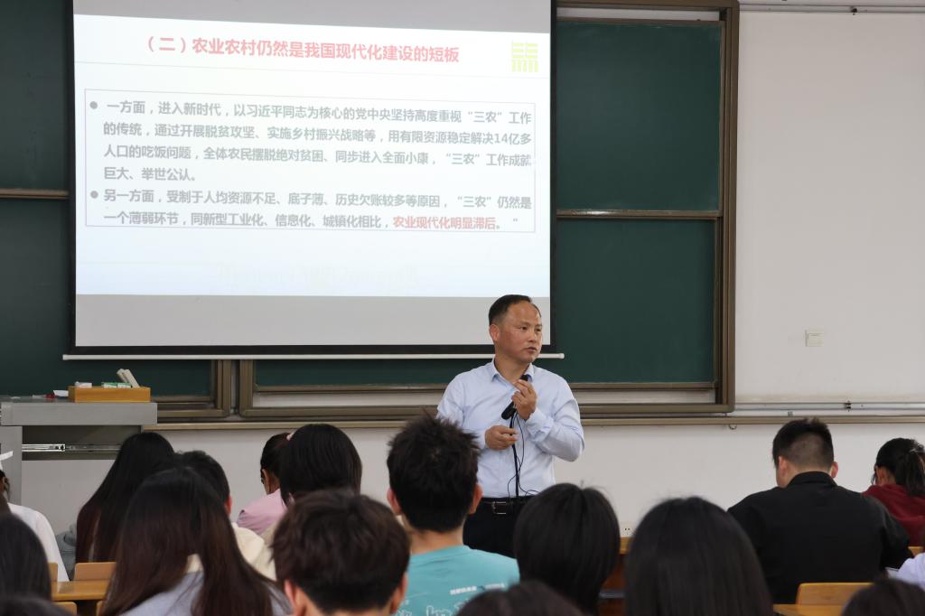 4月10日下午,随着熟悉的上课铃声,副校长王建鸿以“走中国特色农业强国之路”为题在四教C204讲授“形势与政策”课,蜜桃传媒