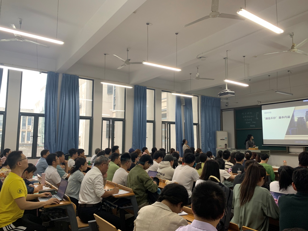 正式讲课前,杨帆老师以曾晖一子、田秀玲小组的课堂汇报作为导入,引导学生积极思考和互动交流,激发学习兴趣。两位同学以“住房不炒”和“取消限购”两种购房现象为切入点,阐述了现象背后蕴含的深刻影响和自己对两种现象反映的具体政策的理解和认识。紧接着,杨帆老师向同学们发出“住房不炒没有过时?”“如何理解现今政府取消限购?”的提问引发同学们进一步思考,和同学们一起回顾了宪法、城乡规划法与城市房地产管理法相关联的知识点,借助“丰县大沙河镇黄庄村村庄规划(2021-2035)公开示意图”讲述了城乡规划法的制定程序, 图文并茂、联系实际解读了城乡规划法由规划编制、实施、审批、批后管理及规划监督五步走的制定程序。整堂课讲授逻辑条理清晰,知识架构层层递进,教学内容丰富有趣,热点案例深入剖析,课堂气氛轻松活跃。