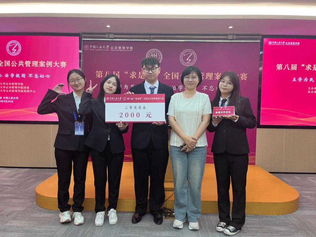 行政管理系杨嬛、姜庆志老师指导,2021级行政管理专业本科生刘鸽、蔡嘉译、罗鸣晔、李婧怡组成的“新建文件夹”团队,撰写案例分析报告《“合”衷共济焕新颜,“作”贾行商乡村繁——中部传统乡村凤凰村的新型集体经济发展路径探索》,最终跻身全国八强,荣获全国三等奖。