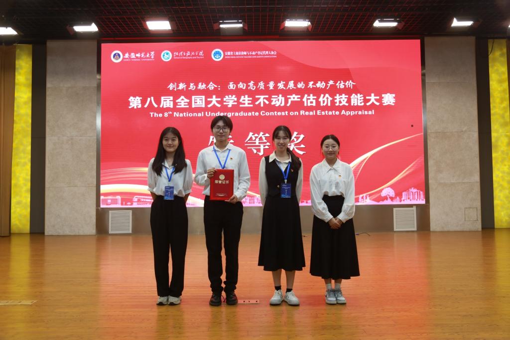 柯新利院长、杨钢桥教授和李红波教授带领2021级7名土地资源管理专业和1名工程管理专业本科生前往现场参加决赛。在经过专家评审、现场答辩以及小组对抗等激烈竞争环节后,由赵泊淮、梁雨霏、曾晖一子和刘蕾组成的团队,凭借其作品《武汉市江夏区湖泗街道海洋村的乡村旅游民宿产业闲置宅基地和农房租赁价格评估》荣获全国特等奖,此外,由贺颖菲、魏颖、张秀婕、吕宇红组成的团队也以作品《大都市郊区认养菜园租赁价格评估——以武汉市江夏区林语未来村的慧耕农场为例》荣获全国三等奖,刷新了蜜桃传媒