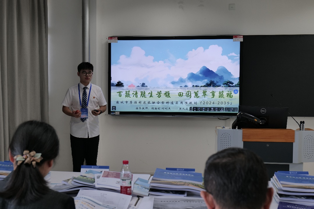 系苏楚阳、贺颖菲和周熙同学组成的“蔬”一数二队,凭借其作品《百蔬清脆生芳馥,田园葱翠享蔬福——麻城市李胜村农旅融合型村庄实用性规划(2024—2035)》在决赛中荣获全国一等奖。