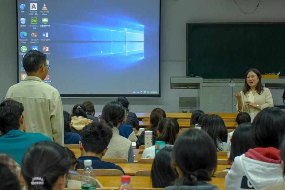 行政管理系教工党支部书记张雅勤老师以“行政管理的‘道’与‘术’”为主题,结合《易经·系辞上传》中“形而上者谓之道,形而下者谓之器”哲学概念,为同学们介绍了行政管理专业的学习内容及实际应用。她强调,行政管理不仅是管理的艺术,更是解决复杂问题的科学方法。张老师介绍了行政管理专业的核心课程,如公共管理、政策分析、人力资源管理和组织行为学等,指出这些课程有助于学生掌握管理理论和实践技巧,培养同学们批判性思维和解决问题的能力。张老师表示,命运不会辜负每一个有规划的人,为了更直观地展示行政管理办学实力,她还邀请了各行业优秀毕业生通过视频分享了求学就业的宝贵经历,这些分享极大地增强了同学们对未来职业生涯的信心。