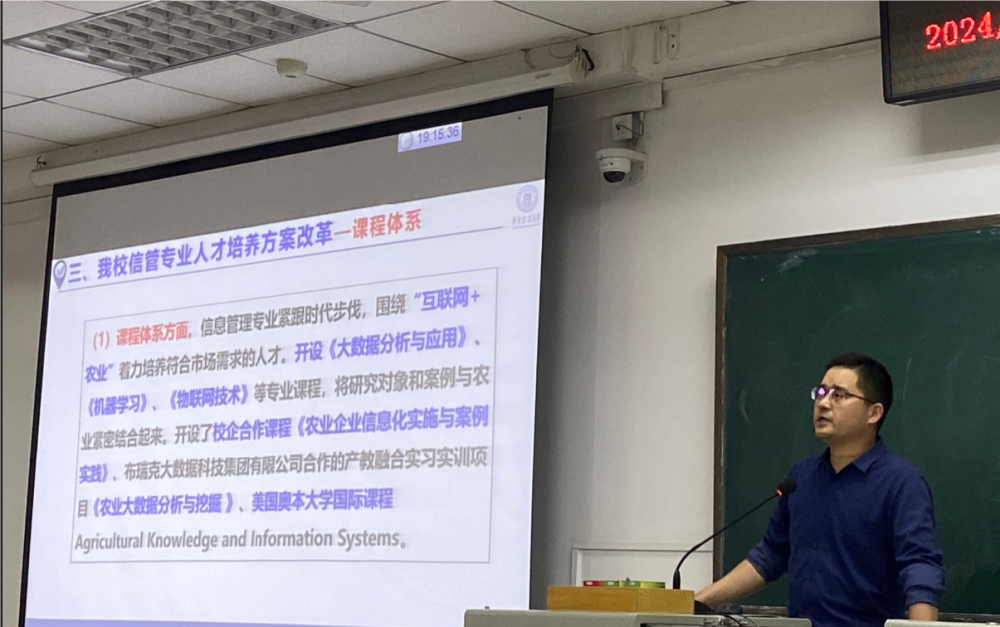 信息管理系主任李优柱老师以“智驭信息社会,领航数字时代”为主题,从专业概述、建设特色、人才培养方案改革、人才培养成效及就业前景等方面对信息管理与信息系统专业进行了全面阐述。他强调,随着时代的发展,大数据、人工智能利用已成为管理科学与工程领域的重要研究课题。李老师详细介绍了在数值赋能的社会大环境下,蜜桃传媒