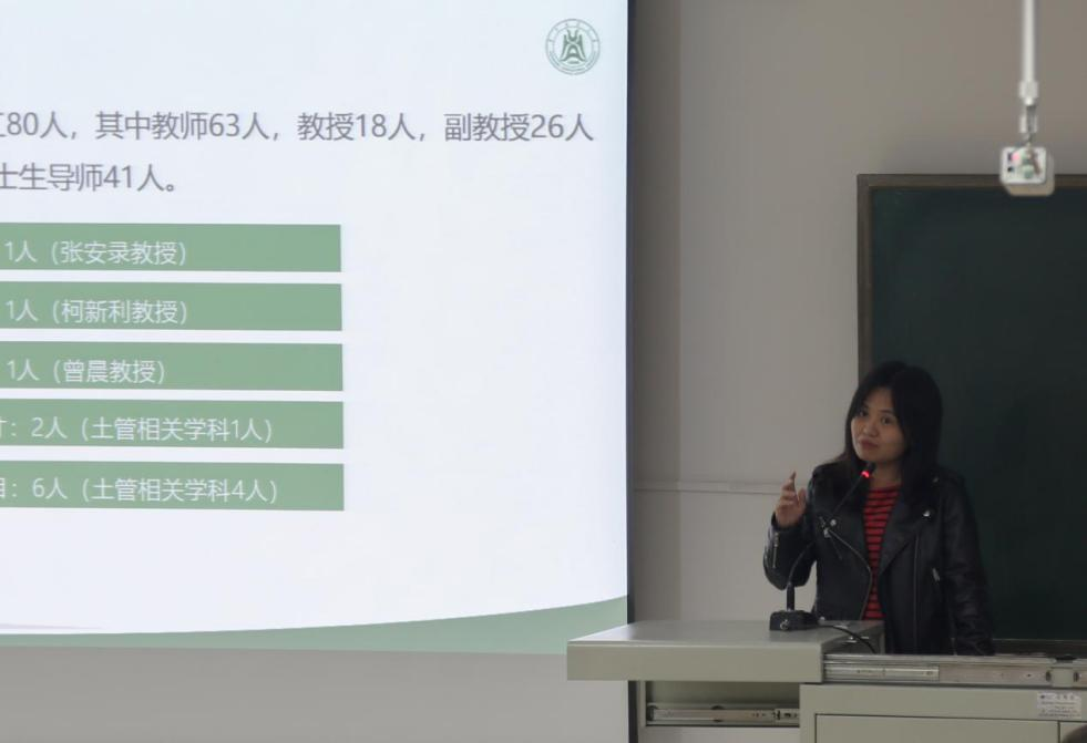 系主任曾晨老师以“数字赋能土地,共筑绿色未来——跨学科师生学习共同体”为题,详细介绍了土地资源管理专业悠久的办学历史、雄厚的师资力量、丰富的科研成果及卓越的教学成果。她深入解读了数字技术在蜜桃传媒