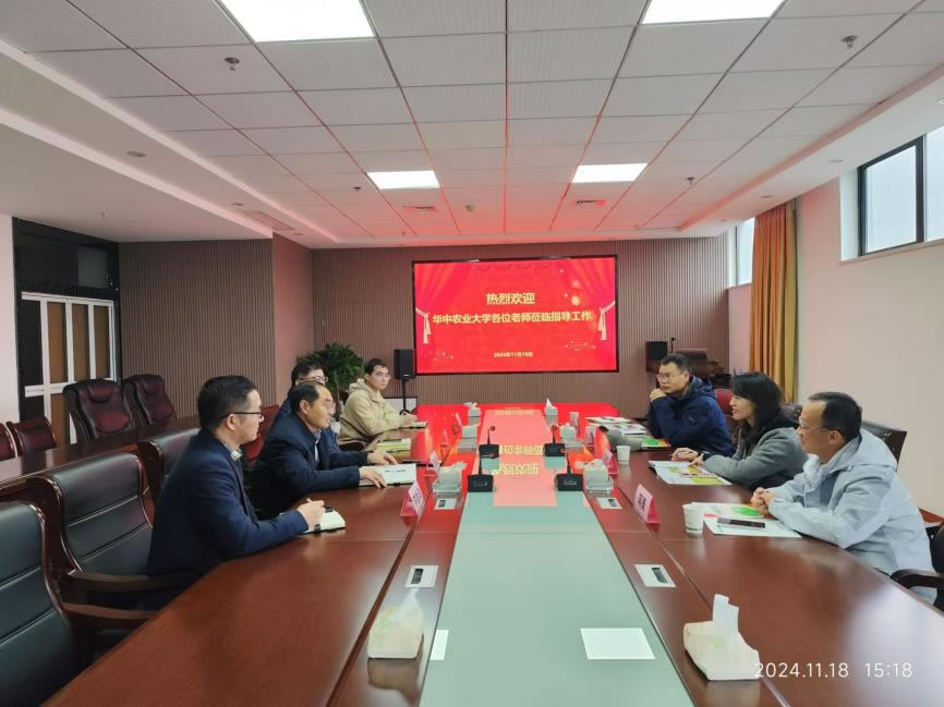 在中垦锦绣华农武汉市科技有限公司,公司常务副总经理潘永忠详细介绍了公司经营及发展情况,袁金展介绍了校内育种科研团队的情况,建议加强校企之间的实习实践的联系。双方对深入开展科技合作达成一致意见,希望华农的科技成果能快速在企业得到转化,提升国家农业科技水平。