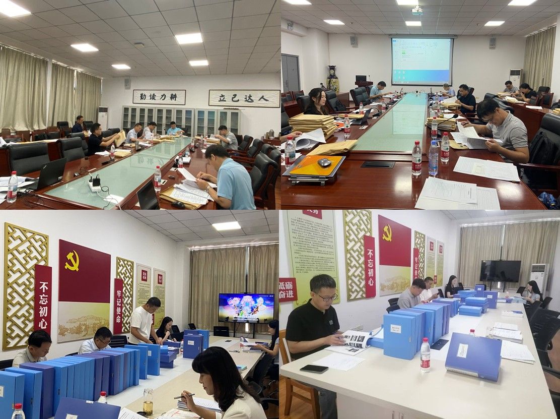 制定的工作方案、梳理的问题清单与整改清单以及评建工作阶段小结等内容。接下来,与会人员分组对课程考核材料、毕业论文(设计)、教学基本文件以及支撑材料等逐项进行细致查阅。
