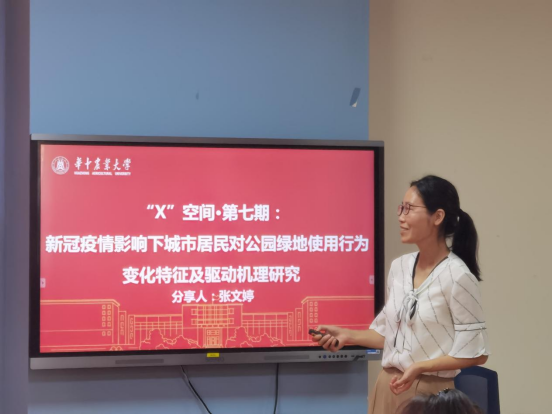 张文婷老师进行题为“新冠疫情影响下城市居民对公园绿地使用行为变化特征及驱动机理研究”的分享汇报。蜜桃传媒