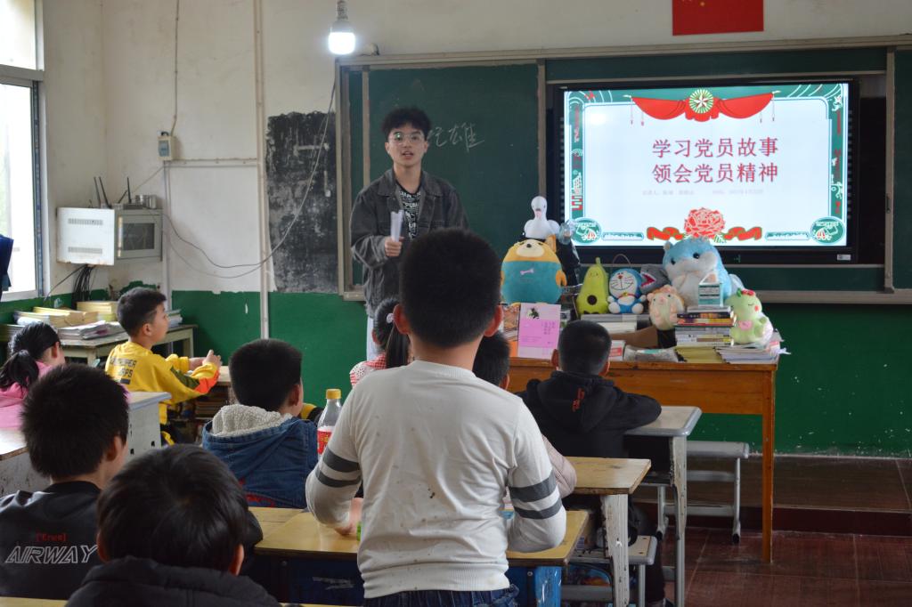 上午,经三小时车程后青志及阡陌全体志愿者乘车到达油铺街村,油铺街中心小学校长柳国喜和华农人力资源部部副部长、驻油铺街工作队队长涂俊才等人在校门口迎接。阡陌志愿者在四(2)班开展了“学习党员故事,领会党员精神”特色党史教育课堂,通过讲述党员故事宣传优秀民族文化,鼓励孩子们学习党员优秀品质。志愿者郭修远与小朋友们亲密互动,以妙趣横生、通俗易懂的方式讲述了优秀党员——人民警察谭纪雄的事迹,得到了孩子们的热烈反响,在讲述党史的过程中播下了育人育德的种子。谈及课后感想,四(2)班黄思杰同学说道:“我从郭修远哥哥口中学到了共产党员勇敢无畏和无私奉献的精神。以后我想成为一名优秀的大学生,争取做一名光荣的共产党员。”郭修远表示,在小学开展党史学习教育是很重要的,希望通过这次党史学习教育能让孩子们更深刻地了解认识带领我们走向光明的中国共产党。