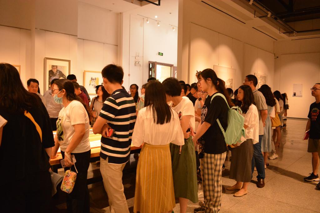 在参观过程中,行政管理本科生党支部的同学们认真倾听讲解,在相关图片与文字材料前驻足研究,阅读欣赏。用心体会艺术家如何用丹青描绘画面,在老师的引导下思考艺术作品背后的时代精神与内涵。