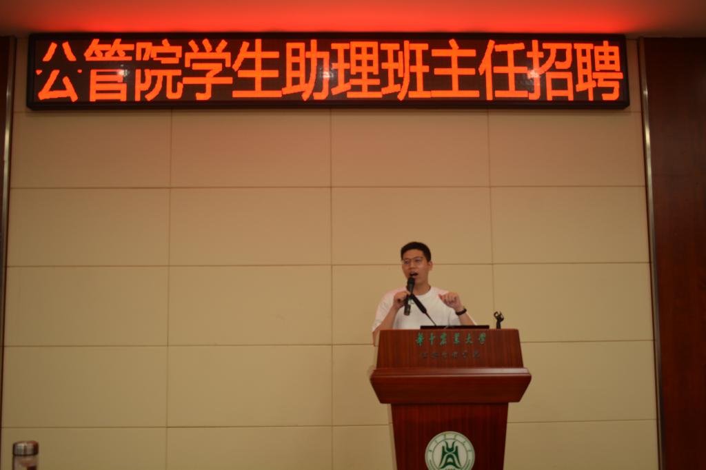 在人文楼M115举办了2021级学生助理班主任招聘。10名学生助理班主任候选人参与本次招聘。本次招聘共设公开演讲、情景模拟和评委及观众提问三个环节。评委由辅导员、2020届学生助理班主任和党团学三大系统各部门负责人担任。各年级、各专业均有同学到场观看本次招聘。