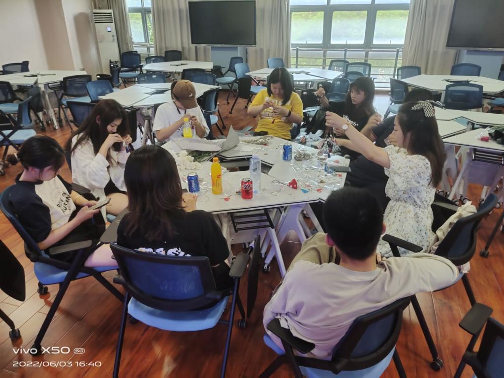 学生会在人文楼M221开展“香溢端午,以花传情”香囊制作活动。