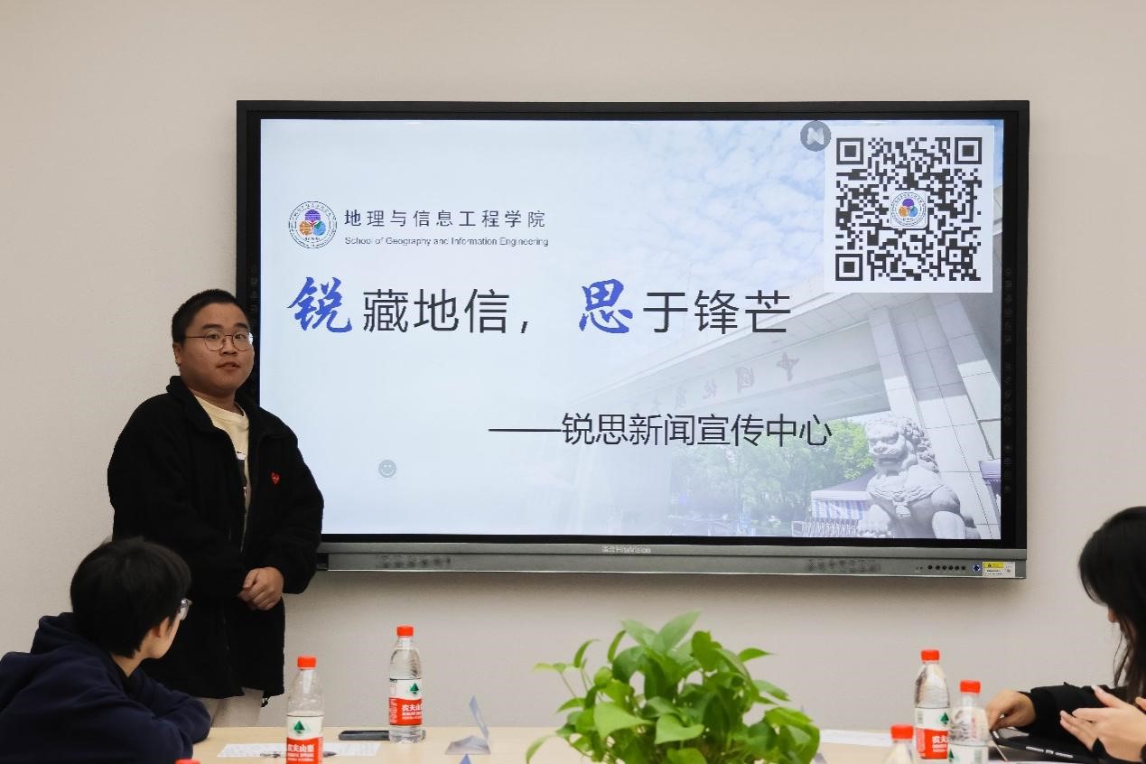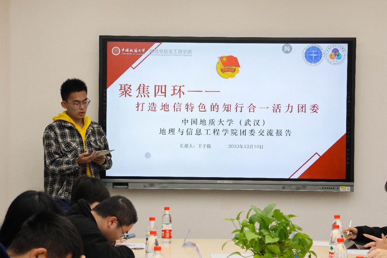 随后,中国地质大学(武汉)地理与信息工程学生骨干进行了经验分享。团委学生兼职副书记王子骁以“知行合一的活力团委”为关键词,介绍了蜜桃传媒
