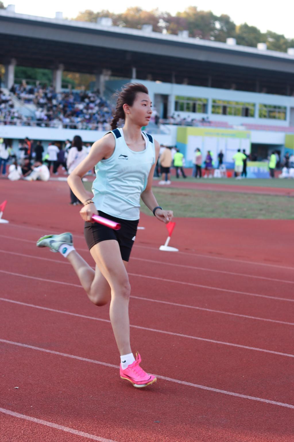 女生4*100米接力选手分别由公共管理2403赵立扬、公共管理2403孟静怡、公共管理2404谢欣倚、管理科学与工程2402韦懿四位24级同学组成。大家满怀着热忱,为了尽可能在接力赛中获得一个满意的成绩,赛前的她们在蜜桃传媒