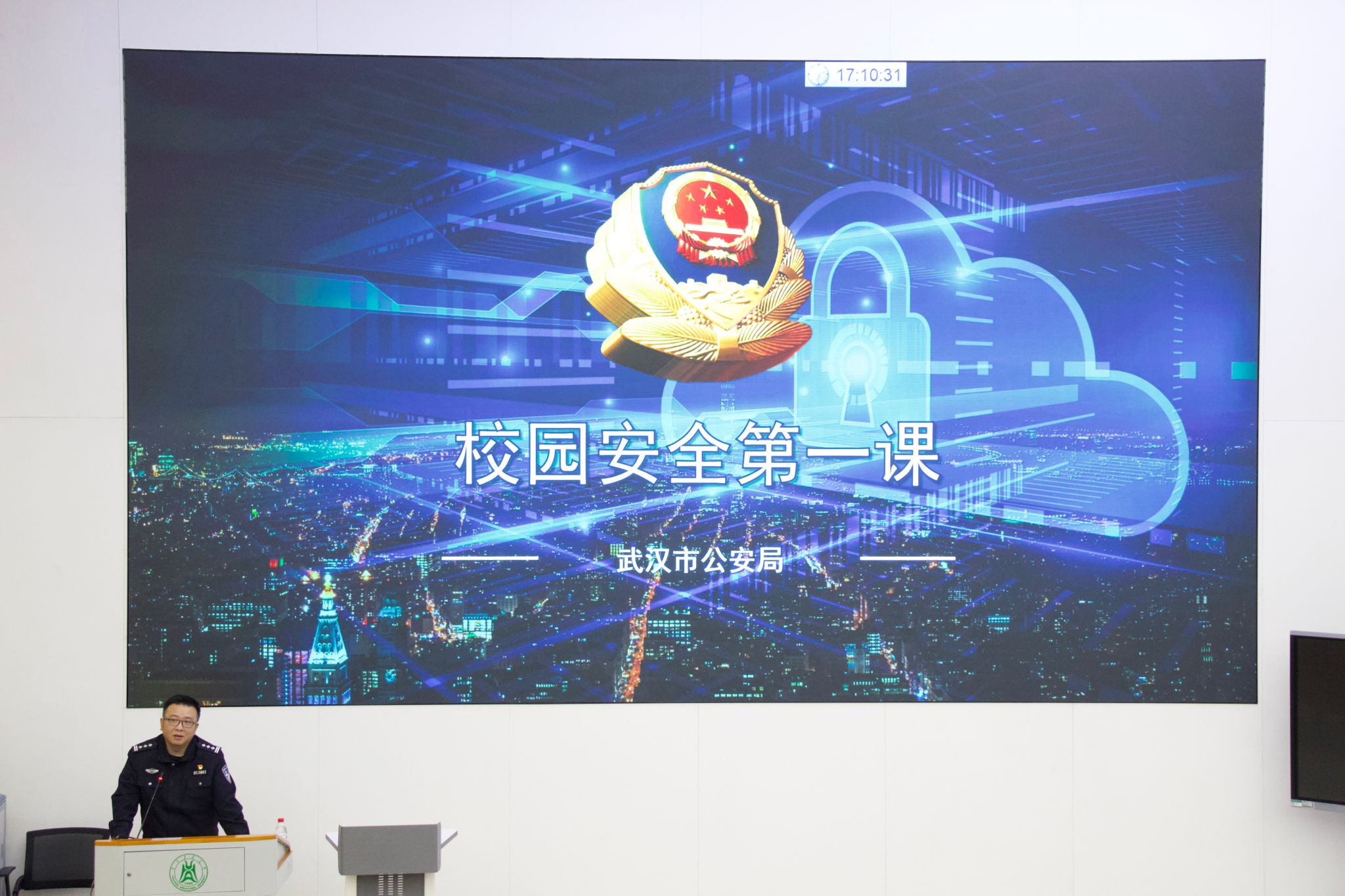 筑牢法治观念,方能行稳致远。在法治教育环节,武汉市公安局陶涛警官为同学们带来了一场印象深刻的普法讲座。陶警官结合高校特点及大学生身边易发的典型案例,从人身安全、财产安全、公共安全、总体国家安全观等四个方面展开,深入剖析了不健康网络活动、防范电信网络诈骗、保护个人信息安全以及预防违法犯罪等方面的知识。他语言生动、讲解透彻,有效提升了同学们的法治意识和自我保护能力,强调了尊法学法守法用法的必要性。