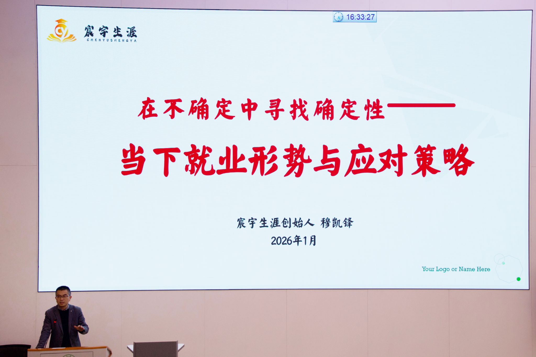 特邀宸宇生涯创始人穆凯锋先生作题为“在不确定中寻找确定性”的专题分享。穆老师结合当前就业形势与行业发展动态,通过生动的案例和互动,深入浅出地分析了职业生涯“早规划、早准备、早应对”的重要性,并分享了“幸福职业生涯”中自我探索、职业目标设定及能力提升的具体路径,鼓励同学们立足实际,开阔视野,主动规划精彩人生。