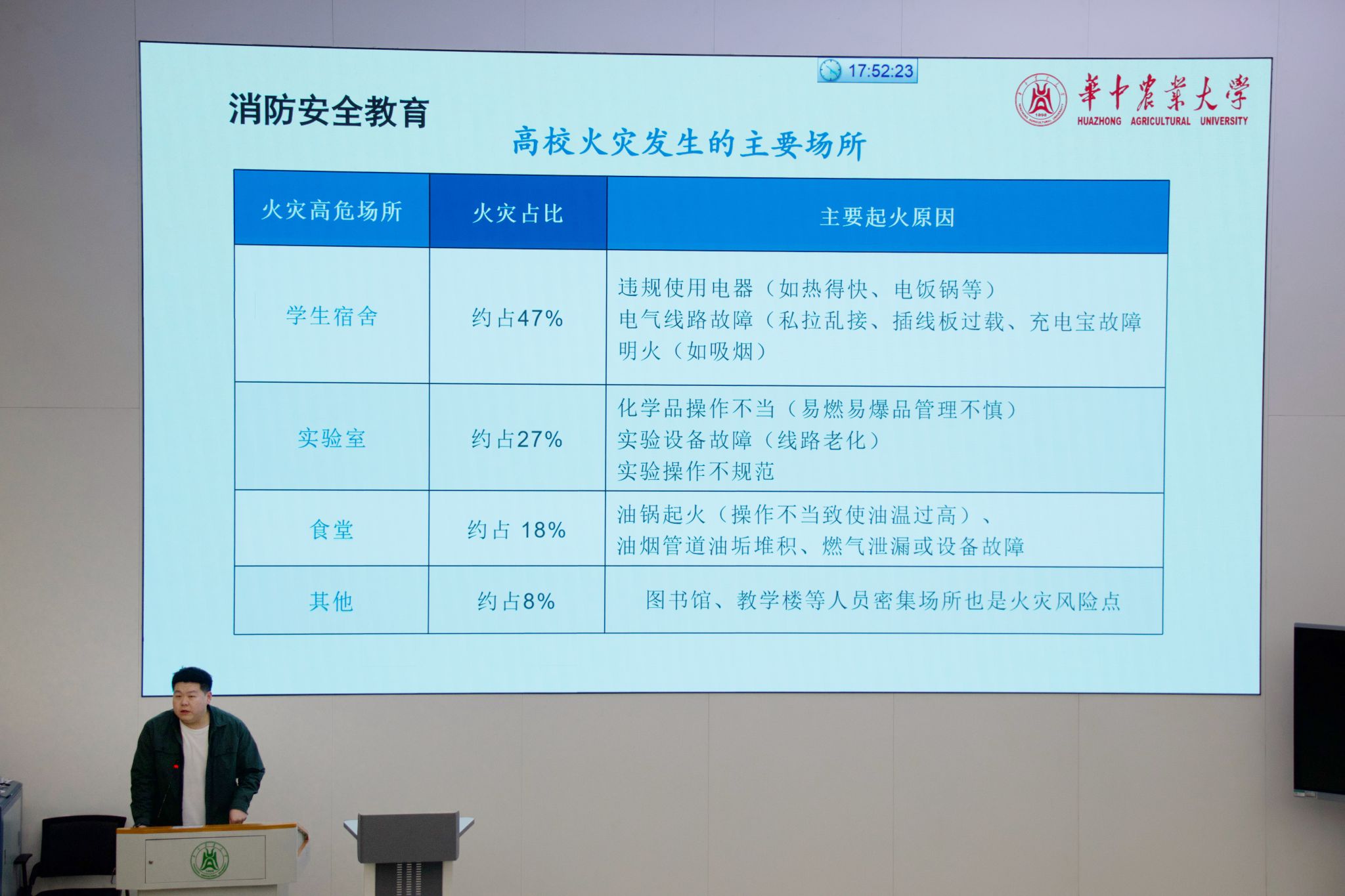 安全无小事,防患于未然。大会紧贴学生实际生活,开展了消防安全与文明寝室创建教育。辅导员朱杰通过案例详细讲解了宿舍用电安全规范、火灾隐患识别与应急处置方法,强化了同学们的消防安全“四个能力”。同时,会议重申了文明寝室创建的标准与意义,倡导营造整洁、和谐、积极向上的寝室氛围,将安全观念与文明习惯内化于心、外化于行。