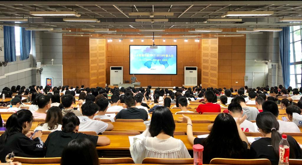 在三教S1报告厅召开2017级和2018级本科生年级大会,辅导员吴晗作暑期安全教育、期末动员和考风考纪教育。