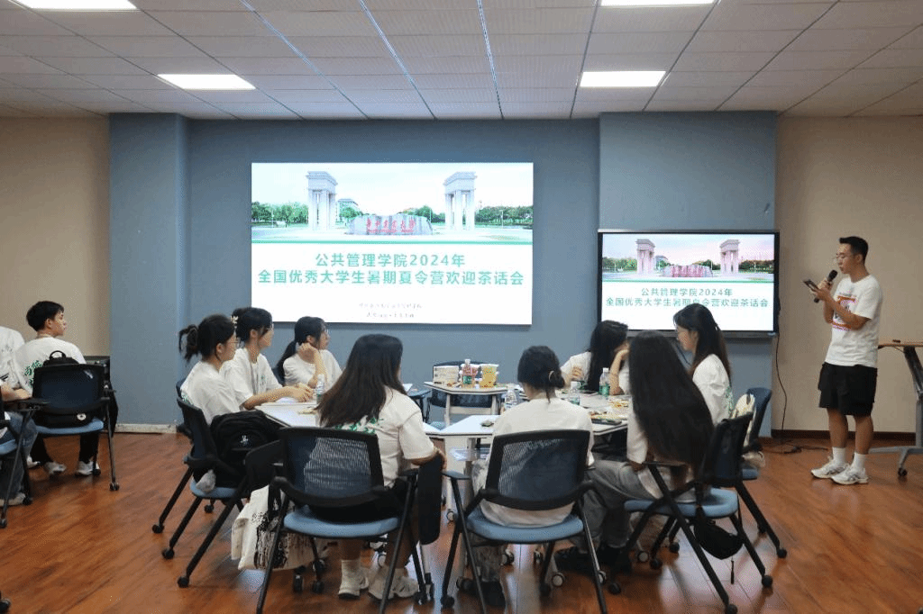 在人文楼M221举行欢迎茶话会,通过“姓名串烧”“击鼓传花”等游戏让营员们在轻松欢快的氛围中熟悉彼此。