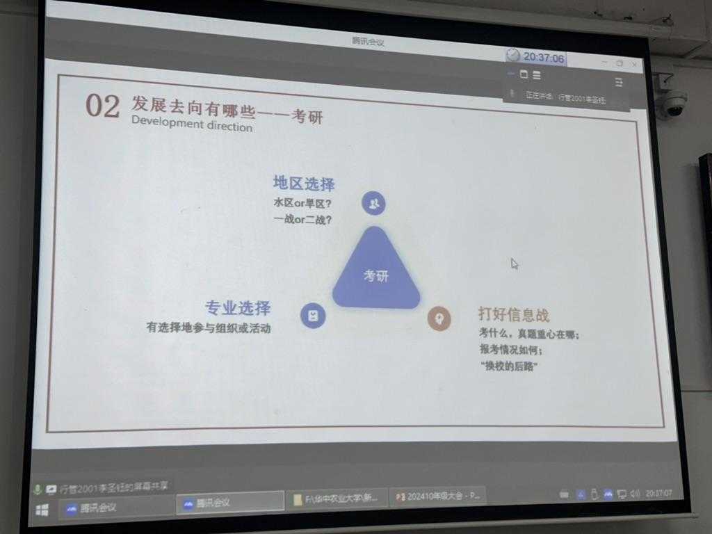 随后,我们连线了2024届行政管理专业的毕业生李圣钰。他凭借出色的表现,成功获得了中铁隧道局人力资源管理岗位、北京空军某部军队文职人员以及中共中央党校(国家行政蜜桃传媒 )科学社会主义与国际共产主义运动专业研究生的三份offer,目前正就读于中央党校深造。李圣钰就“发展的多元路径及应对策略”这一主题,为同学们进行了详尽而透彻的解析。他特别指出:“在职业规划中,切忌好高骛远、眼高手低。”他鼓励同学们应保持对周围信息的敏锐度,明确个人目标,并构建稳固的心理素质。他强调,不应追求短期内的快速成功,而应注重日常积累,稳扎稳打,以实现长远的发展。